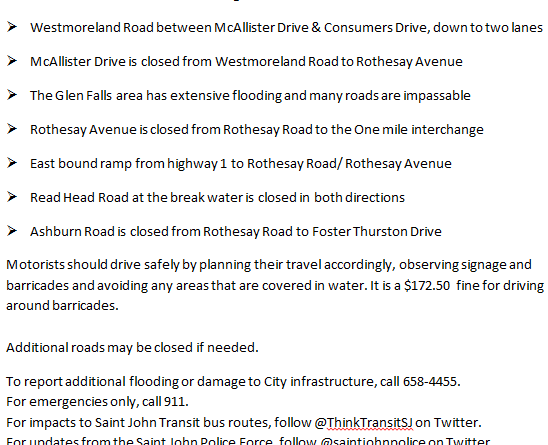 Road Update From the City of Saint John